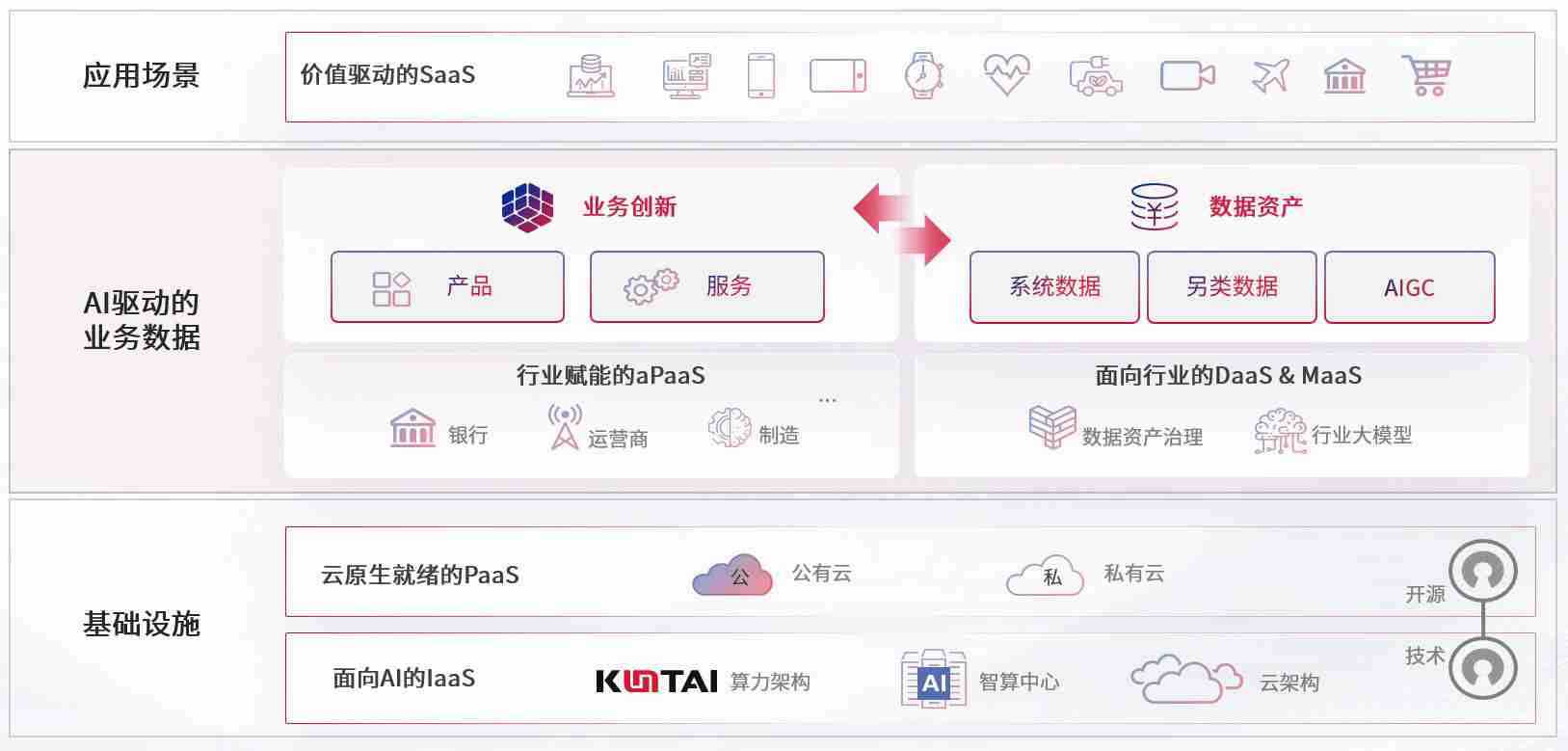 数字时代,,,围绕企业数字化转型的关键要素,,,,菠菜导航数码开创性的提出数云融合战略和技术体系框架,,,,着力在云原生、、、、数字原生、、、、AI原生和信创产业上架构产品和服务能力,,,,为处在不同数字化转型阶段的快消零售、、汽车、、、金融、、医疗、、、政企、、教育、、运营商等行业客户提供泛在的敏捷IT能力和融合的数据驱动能力,,,构建跨界融合创新的数字业务场景和新业务模式,,助力企业级客户建立面向未来的核心能力和竞争优势,,全面推动社会的数字化、、、智能化转型升级。。。。
